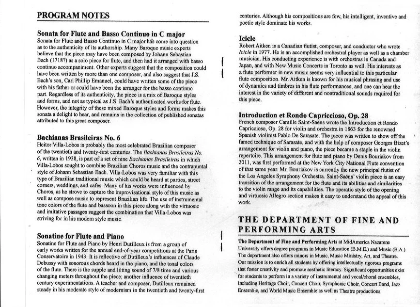 And below are the program notes that accompanied the same recital. (January 24, 2016 @ MNU)